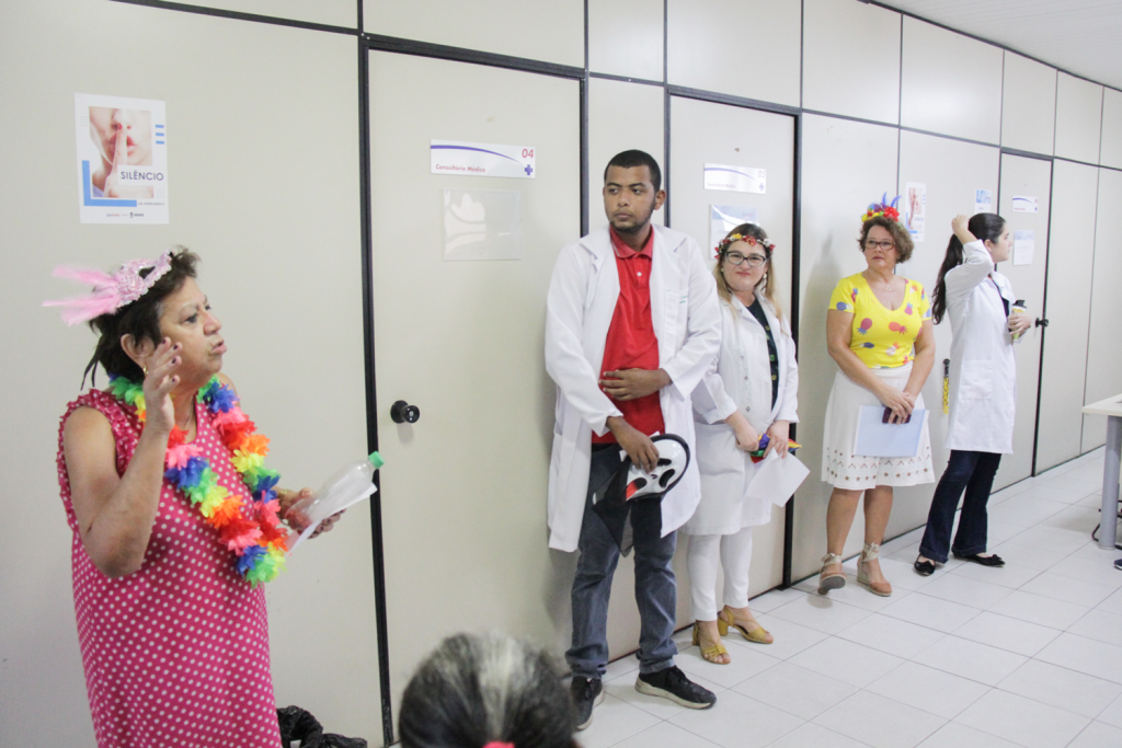 O Ipesaúde, através do Centro de Endocrinologia e Diabetes, reuniu uma equipe composta por Nutricionista, Enfermeiros e Técnicos em Enfermagem, na manhã desta quarta-feira (17), em um cortejo pelos corredores da sede da autarquia para orientar acerca dos cuidados que devem ser tomados durante o carnaval, além de aferição de pressão e glicemia, verificação de peso, altura e circunferência abdominal.