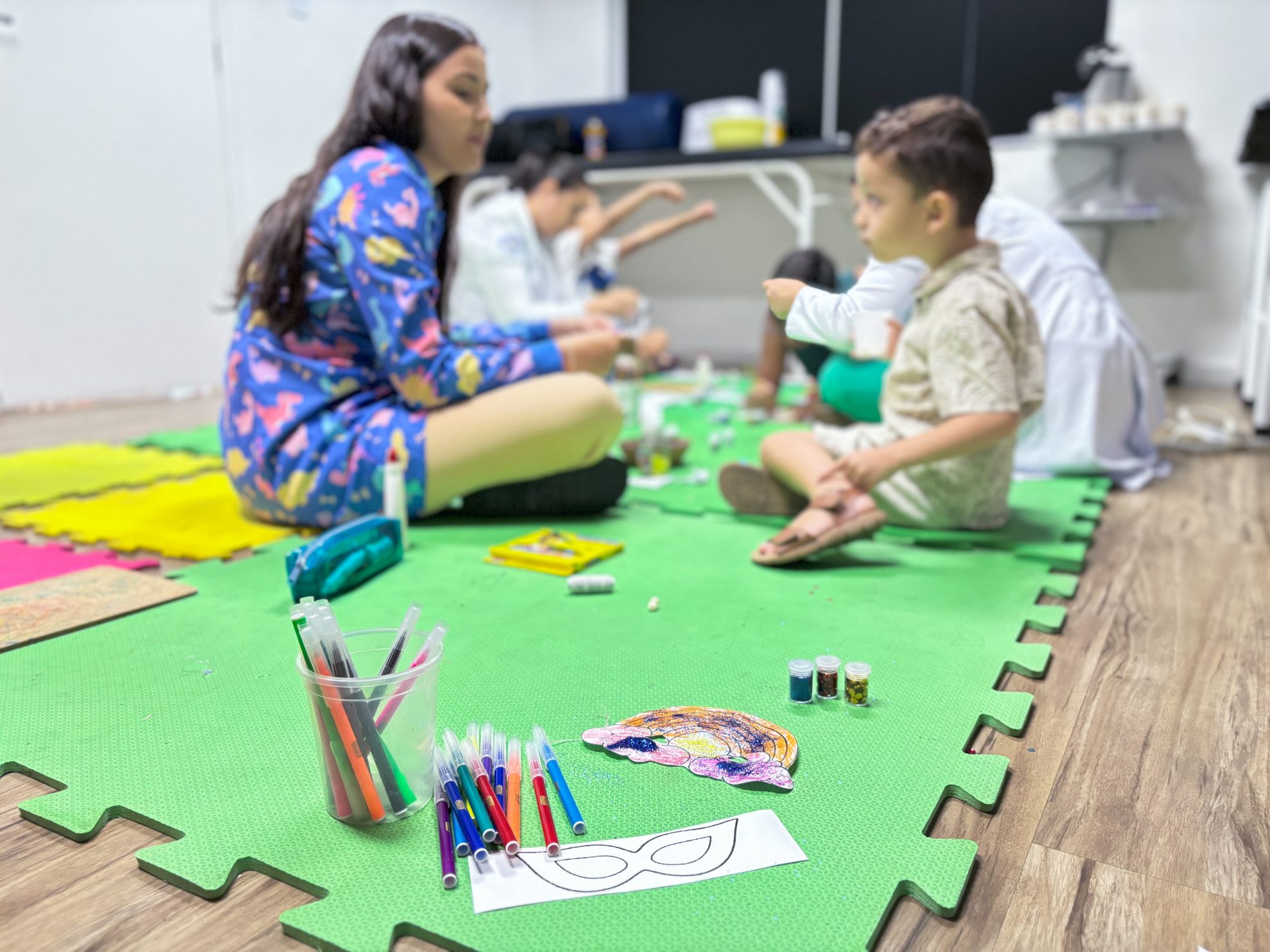 A fonoaudióloga Johane Paula de Holanda Medeiros foi outra profissional que avaliou a oficina como muito positiva. Segundo ela, na parte fonoaudiológica estão sendo trabalhados aspectos como a estimulação da linguagem oral, o contato visual, a concentração, o foco e a interação de forma espontânea e lúdica, por meio de pinturas, recortes e músicas. “A oficina é extremamente importante por estimular a socialização da criança e mantê-la em contato com o que está acontecendo no mundo”, afirma.