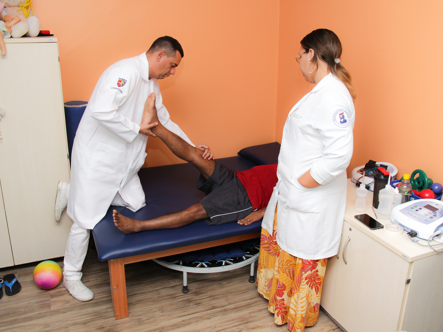 Os alunos estão atuando na área de Ortopedia e Neurologia e contam com a supervisão de dois preceptores, Antônio Pereira Neto e Vanessa Alves Ferreira Santos, ambos fisioterapeutas, que explicaram como funciona o atendimento em consonância com uma melhor estratégia de conduta. “O atendimento funciona por rodízios com 5 a 6 alunos, eles chegam aqui as 7:30h, tem orientações e as 8h iniciam os atendimentos que duram 50 minutos por pessoa, a tarde o atendimento se dá das 13h às 17h, pois é um estágio de 4h”, conta Antônio Pereira.