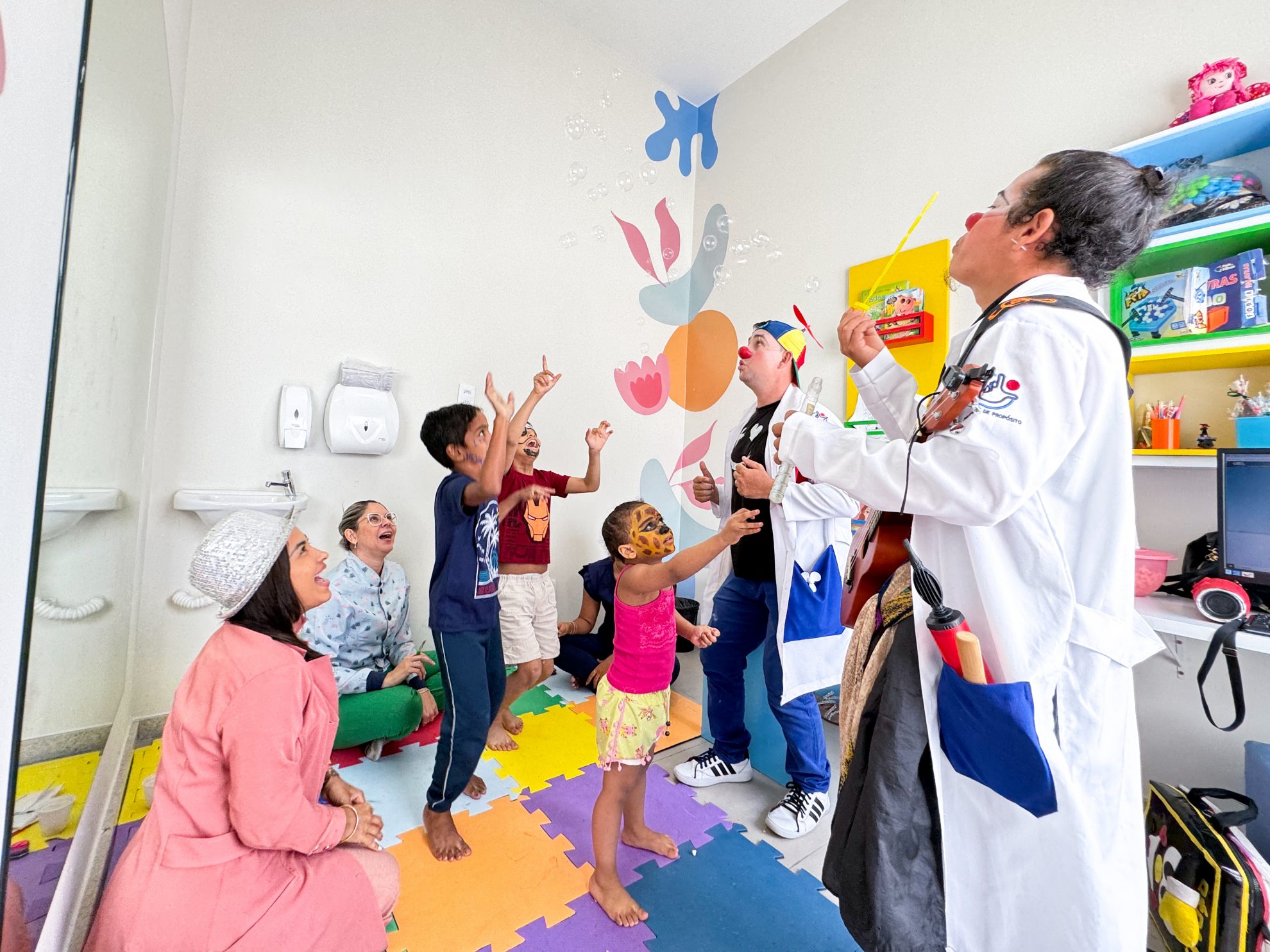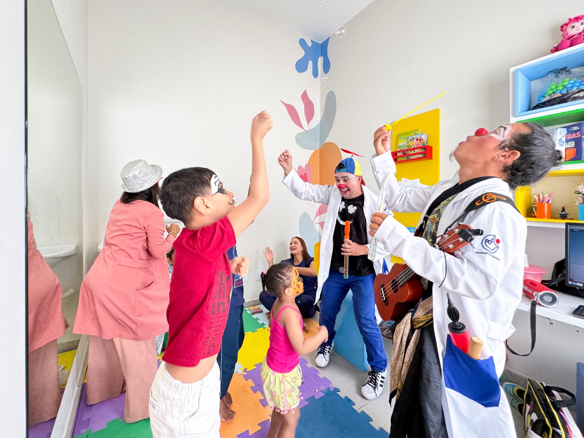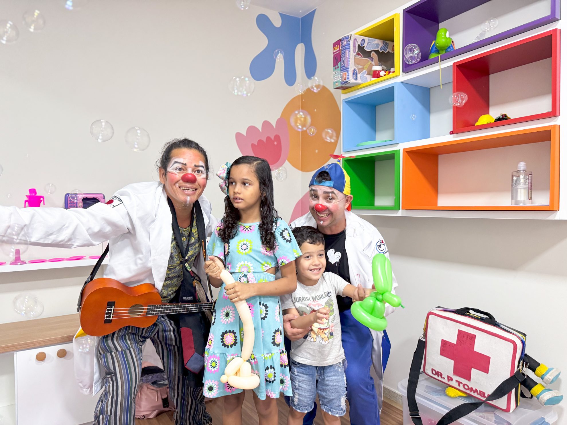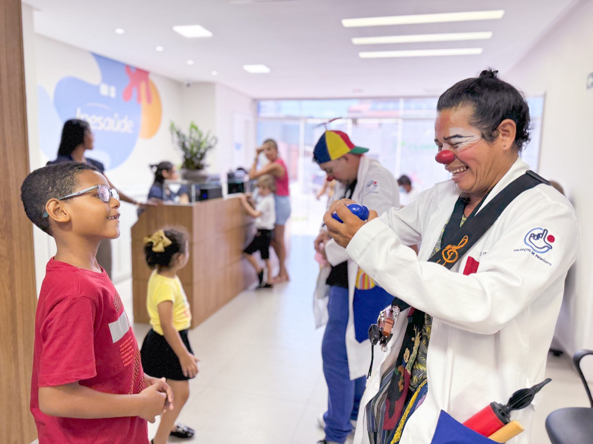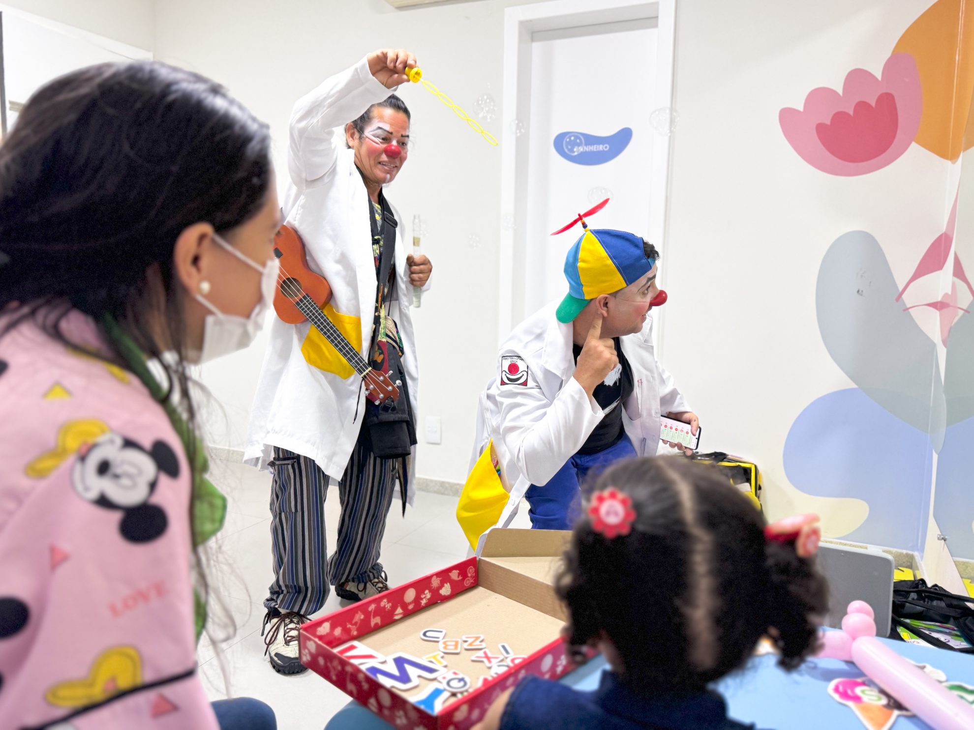 Na manhã desta quarta-feira, 9, o Centro de Terapias Integradas foi palco de um momento especial de diversão para as crianças, garantindo uma manhã cheia de criatividade e brincadeiras. Os palhaços Dr. Pitomba e Dr. Excel Rose, do projeto Palhaços de Propósito, fizeram sucesso com brincadeiras e cantigas.
