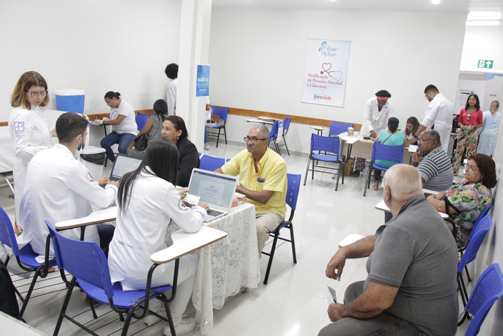 Os espaços foram organizados em estações, nas quais cada uma exerce uma função diferente no acolhimento, como a coleta de urina, para verificar a capacidade de filtragem dos rins e o nível de presença de proteínas descartadas; exame do pé em risco, que constata a presença de feridas, rachaduras, pele ressecada, unhas espessadas, calos e sensibilidade diminuída; fundoscopia, que examina artérias, veias e nervos da retina, além de informações nutricionais para orientar os beneficiários sobre a importância da manutenção de hábitos. Há também uma parceria com o Centro Odontológico do Ipesaúde, que está realizando avaliação odontológica, para verificação sangramentos na gengiva, mau hálito, infecções por fungos e bactérias;