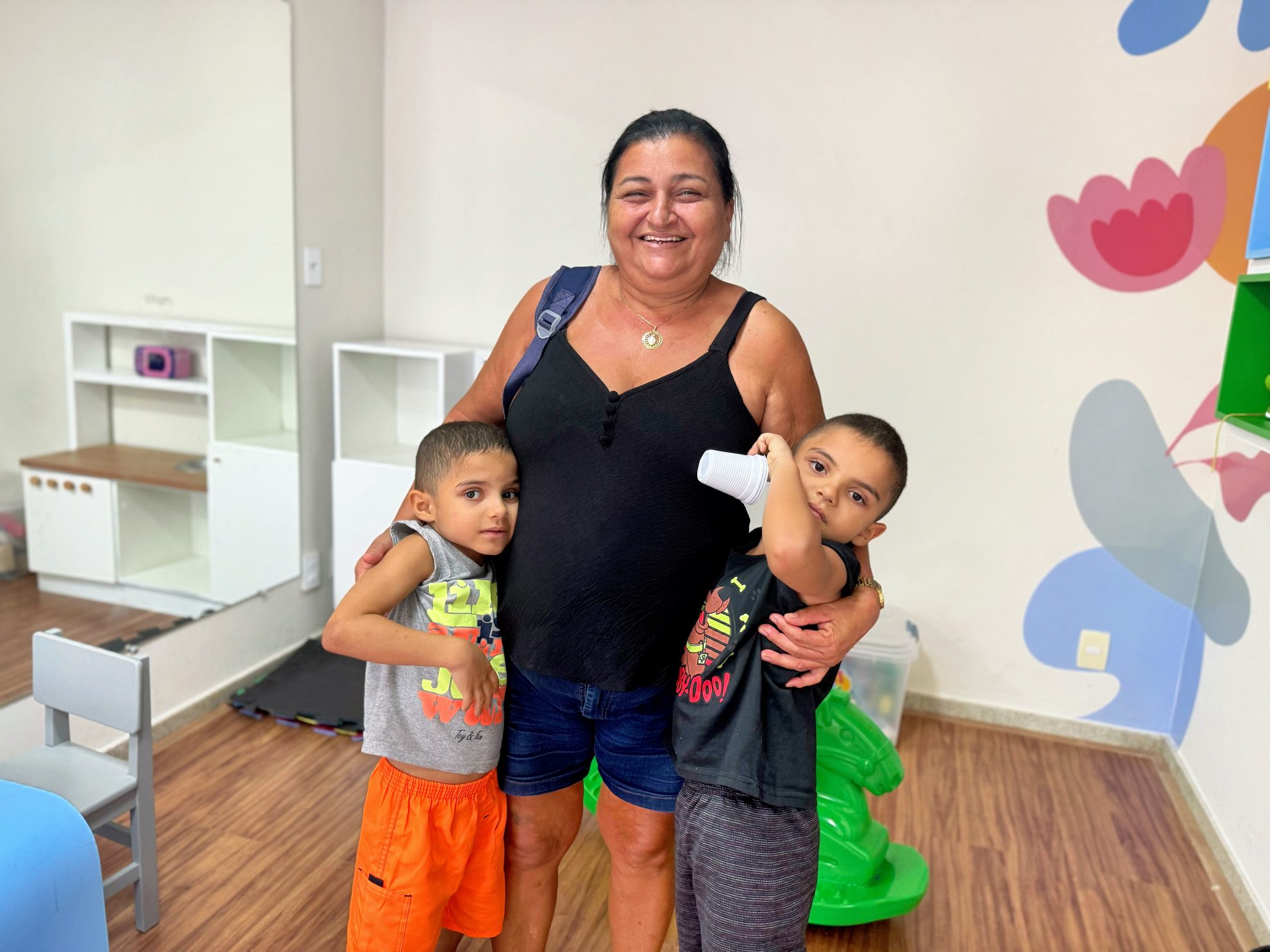 Maria José Alves é avó de Marlon e Matheus, gêmeos de cinco anos com TEA, e sabe bem da importância dos tratamentos multidisciplinares, como a Terapia Ocupacional. Eles são assistidos pelo Ipesaúde. “Estou achando bom o centro. Estou gostando. Está ajudando muito mais na evolução dos meninos”, diz.
