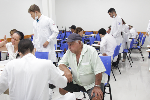“É importante que o aluno interaja com outros cursos, outras especialidades e nós estamos permitindo uma imersão nesse universo do paciente que tem diabetes, o que faz com que o aluno aprenda esse processo e como lidar com isso. Intensificamos as orientações sobre o que é mais prevalente no paciente diabético, que possui um sistema imunológico menos resistente, então a progressão dessa doença acaba sendo mais rápida. Para tanto, começamos com palestra, triagem para ver se tem outros tipos de lesões, patologias, ai ele passa por uma escovação para receber orientações sobre a maneira correta de executar a ação e aí daremos seguimento às ações de promoção à saúde”, disse, Regiane do Amaral.