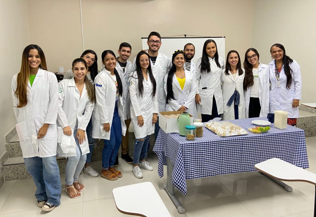 Estudantes de nutrição da Unit com a professora Sandra Maia e com a nutricionista do Ipesaúde, Cínthia Fontes