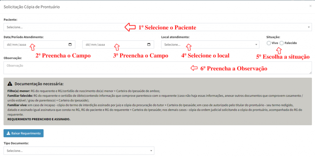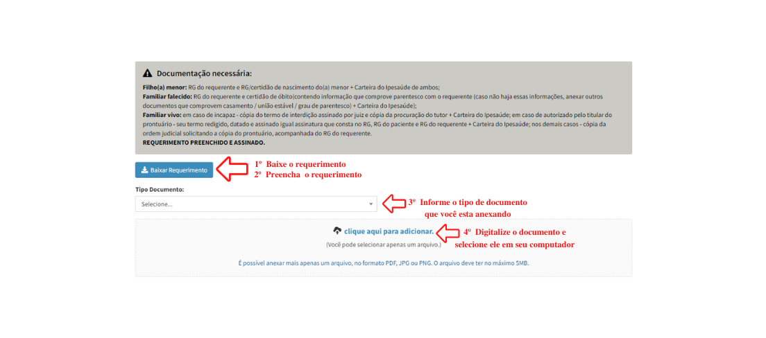 5º Passo – Baixar Requerimento, Preencher e Anexar os demais documentos necessários